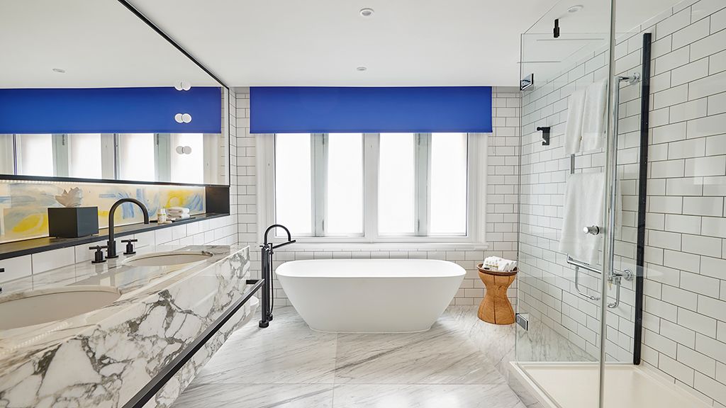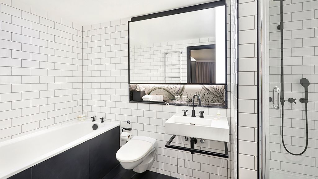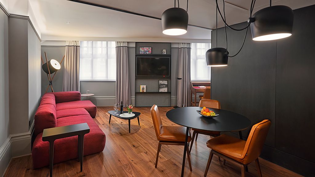 This extravagant suite, by acclaimed British designer Sir Terence Conran, features over-the-top interiors inspired by East London’s heritage and culture. The king bedroom and large lounge space include Eames and Karuselli chairs, a Savoir bed and a replica of the coffee table Conran designed for his own home. The oversized bathroom features a walk-in shower and fast-fill bathtub.