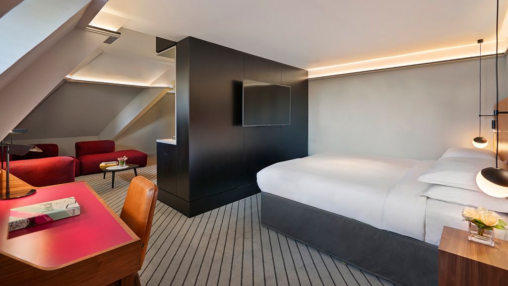 The ultimate luxury, this locally inspired suite offers city views and includes a separate bedroom with king bed, lounge space and work area. The modern bathroom features a walk-in shower and fast-fill bathtub.