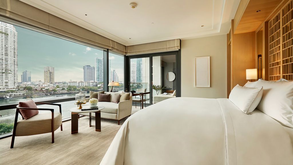 Located from the fourth to the tenth floors, river suites boast lavish space in which to luxuriate, entertain or simply laze away. With an elegant, residentially styled setting, the suites offer a separate living room, spacious bedroom with a king-size bed, large marble bathroom and a powder room. Generous balconies with divans promise respite from a day of charoenkrung exploration. Accommodation information size: 95 sqm occupancy: 2 adults, 1 child bed: king-size bed view: panoramic river view flexible check–in and check–out