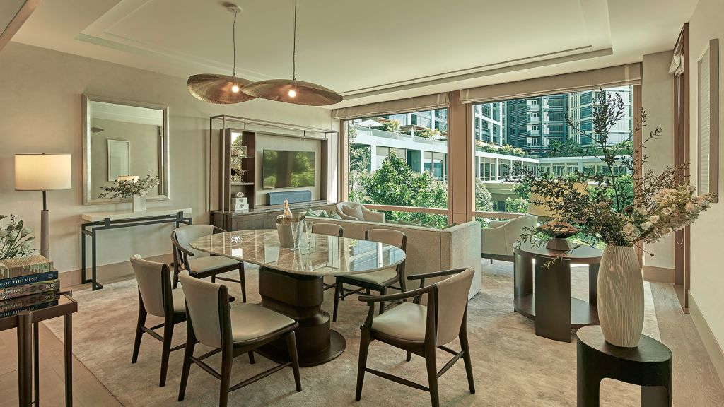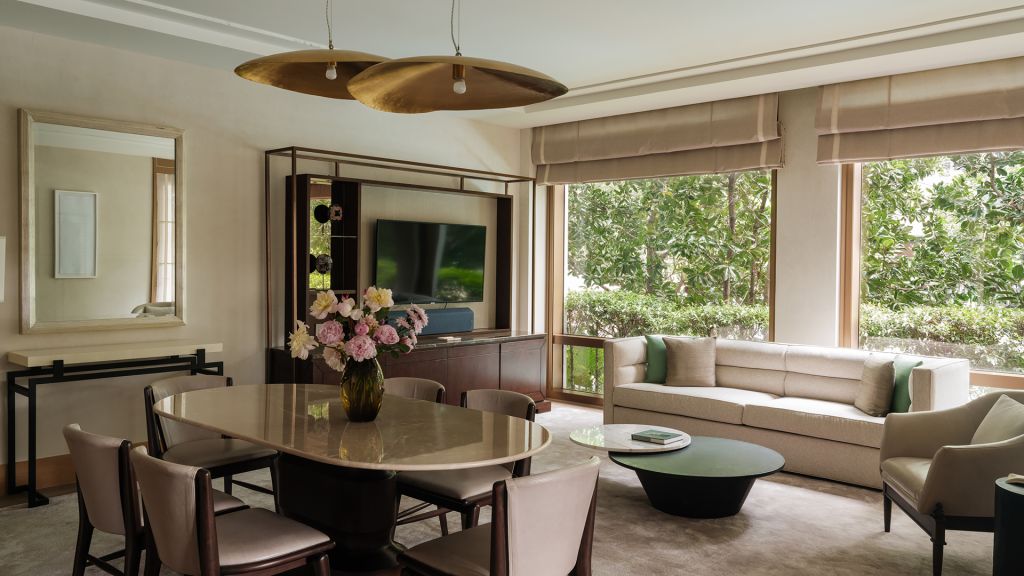 Located on the first and second floors, courtyard suites look out to the resort’s stately swimming pool and of course, the river. With an elegant, residentially styled setting, the suites offer a separate living room with a dining table, spacious bedroom with a king-size bed, large marble bathroom and powder room. Generous balconies from which to take in aquatic activity both on the river and in the pool, complete the offering. Accommodation information size: 101 sqm occupancy: 2 adults, 1 child bed: king-size bed view: panoramic river view flexible check–in and check–out