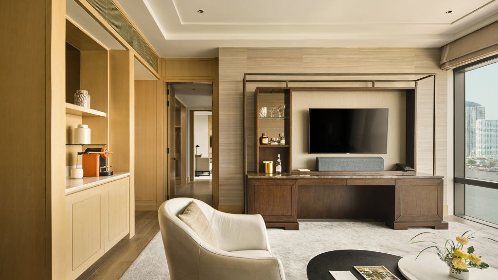 Located on the ninth floor, river premier suites are enveloped in natural light with sweeping vista of the chao phraya river. These two elegant suites offer a spacious bedroom with a king-size bed along with a generous living room, balcony, a powder room, and a large marble bathroom.