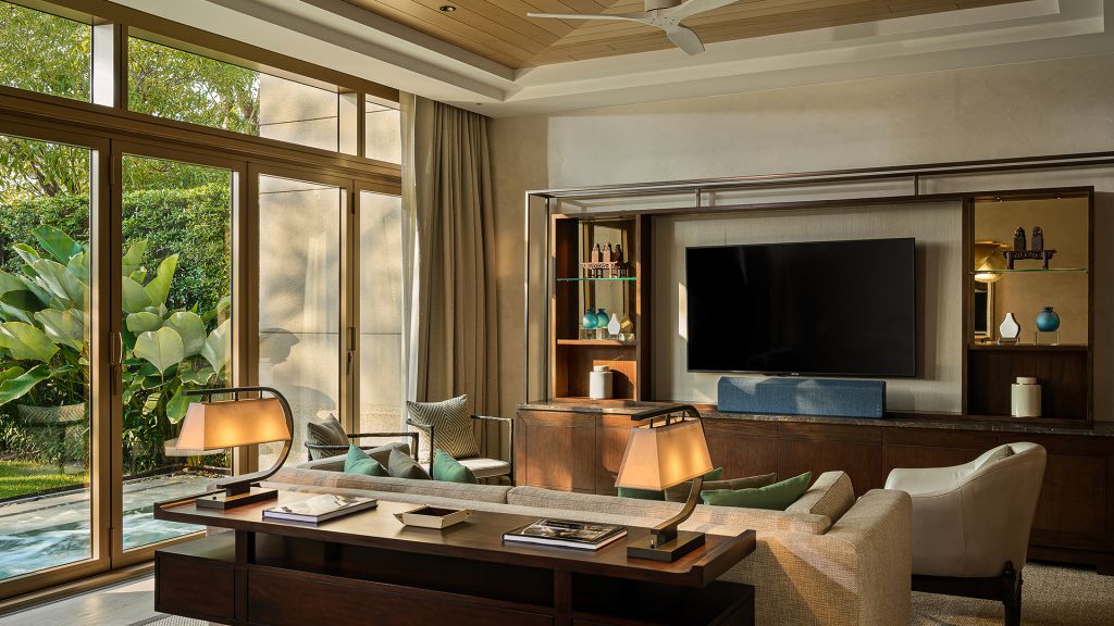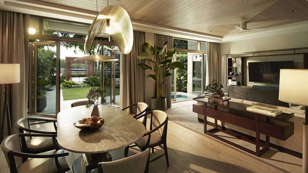 Accessed via a private courtyard entrance, the villas offer exquisite comfort and complete privacy at the river’s edge. Its lavish layout includes a separate living room with dining room, spacious bedroom with a king-size bed, large marble bathroom, powder room and a jacuzzi plunge pool surrounded by tropical gardens. A sala for two provides a front row seat to witness the theater of river life. Accommodation information size: 259 sqm occupancy: 2 adults, 1 child bed: king-size bed view: panoramic river view flexible check–in and check–out