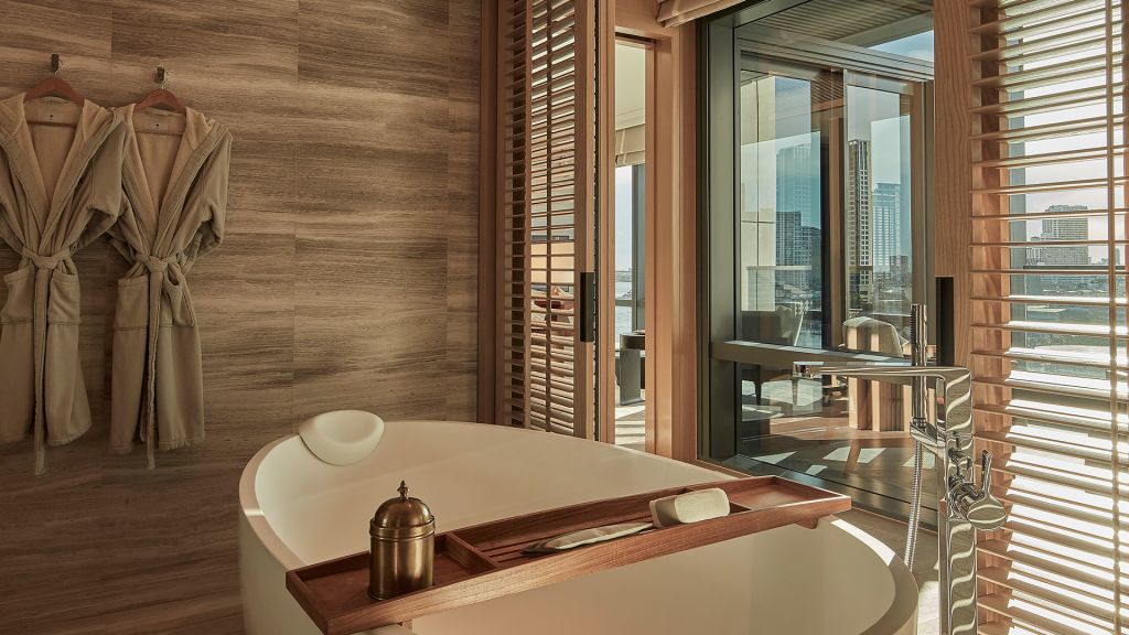 Located from fifth to the tenth floors, riverfront premier accommodations look out to the river. Offering an elegant, residentially styled setting, the rooms feature custom art and a generous marble bathroom along with with a king-size bed. A balcony with divan to take in the bustling river at dawn with a ristretto or at dusk with your favorite petillant. Accommodation information size: 61 sqm occupancy: 2 adults, 1 child bed: king-size bed view: panoramic river view flexible check–in and check–out