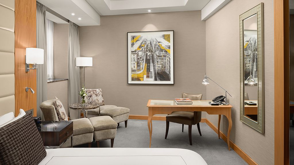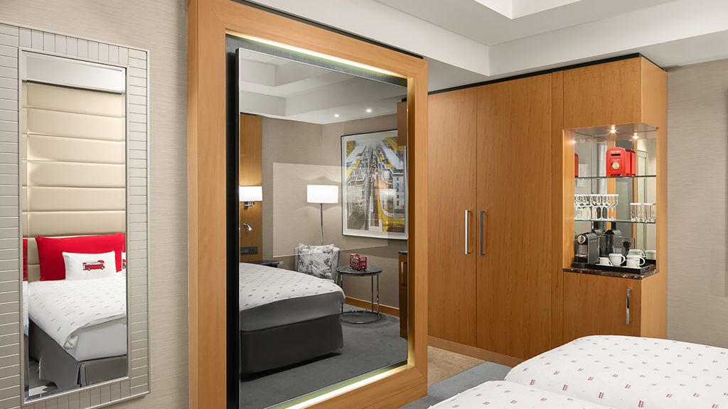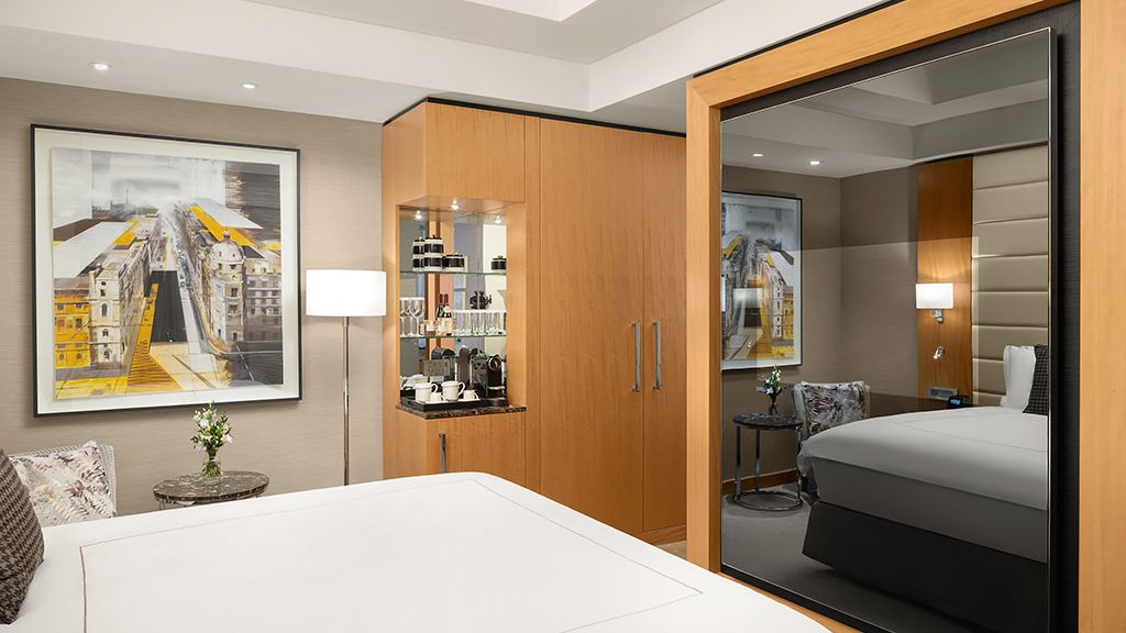 Spacious room with one king bed and one single bed, free Wi-Fi, rain shower, espresso machine, safe and marble bathroom. Maximum occupancy is 3 adults.