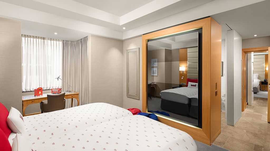 Executive Family Room with Lounge Access, complimentary Wi-Fi, sofa bed, espresso machine, safe, marble bathroom. Maximum occupancy is 3 adults.