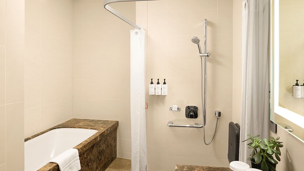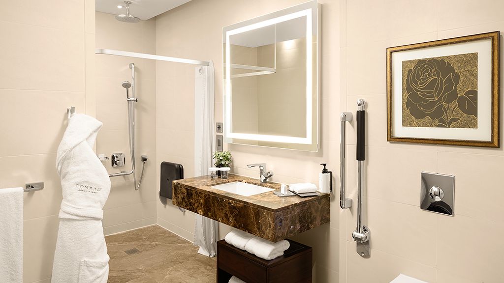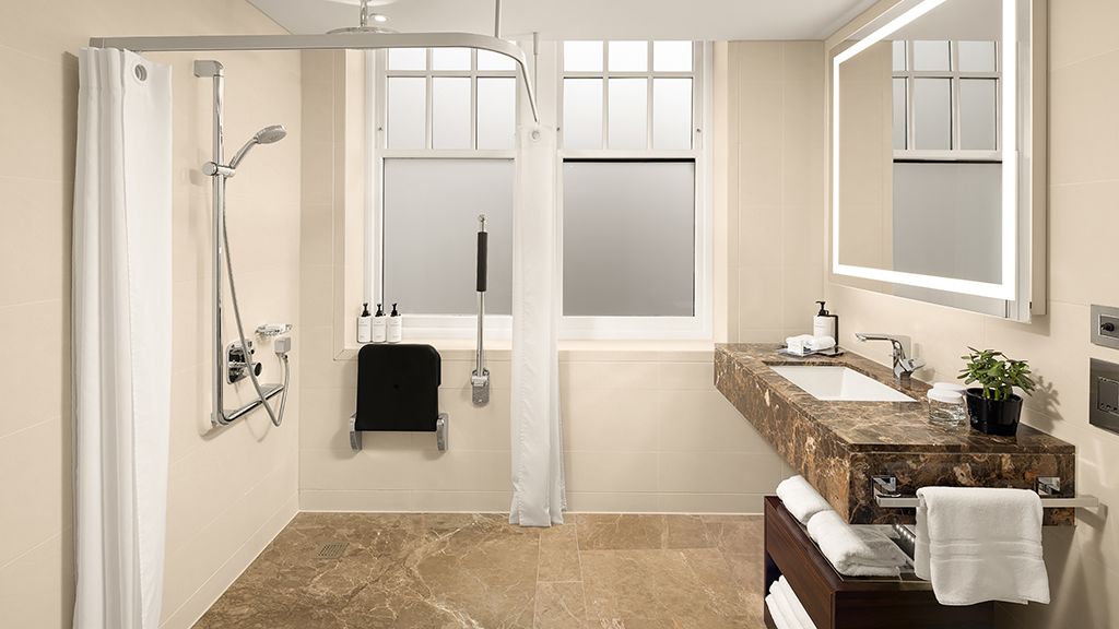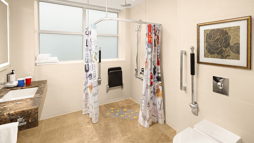 This wheelchair accessible room features roll-in shower, free Wi-Fi, espresso machine and safe. Maximum occupancy is 2 adults.