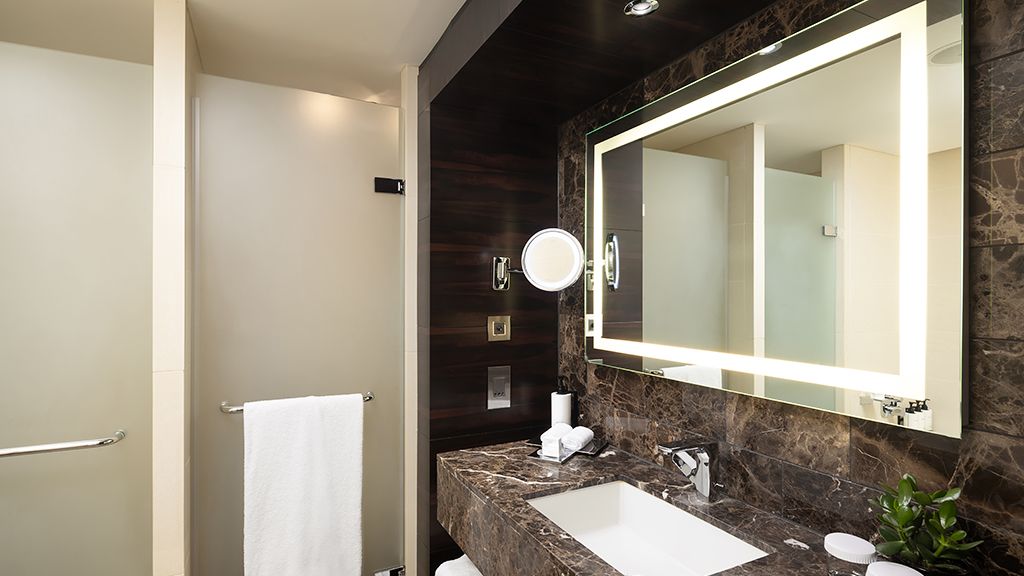 Features complimentary Wi-Fi Internet, seating area, spacious bathroom. Includes lounge access with breakfast, drinks and snacks. Maximum occupancy is 3 adults.
