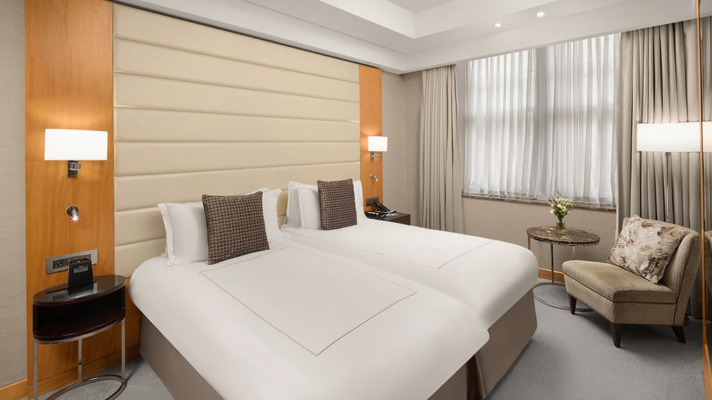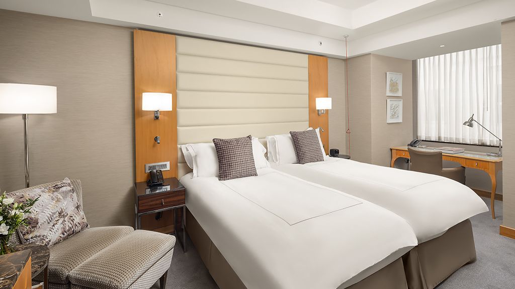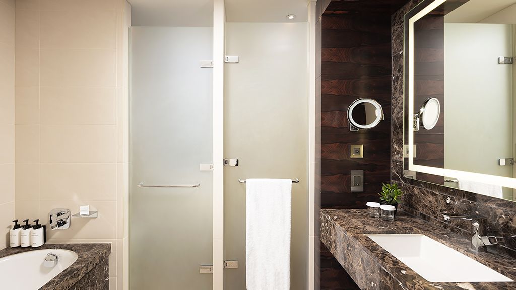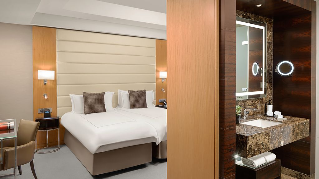 Features Twin beds, complimentary Wi-Fi, bathroom with separate rain shower and bath, and HDTV. Includes lounge access with breakfast, drinks and snacks. Maximum occupancy is 2 adults.