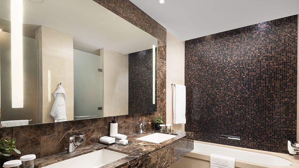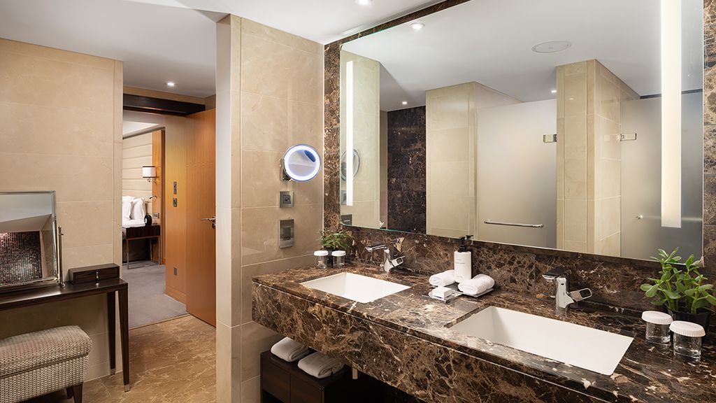 Features complimentary Wi-Fi, two TVs, separate living room, spacious bathroom. Includes lounge access with breakfast, drinks and snacks. Maximum occupancy is 3 adults.