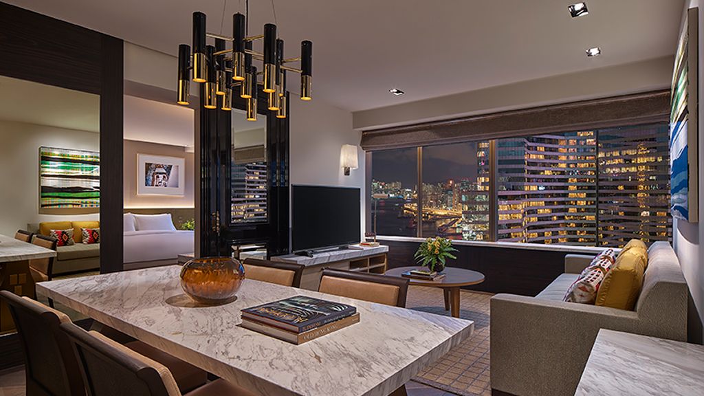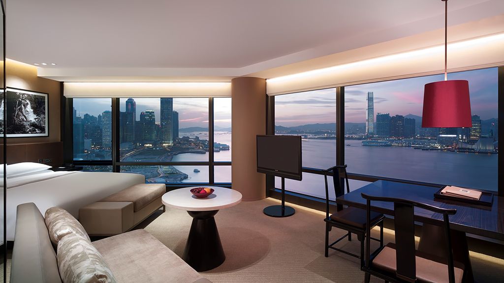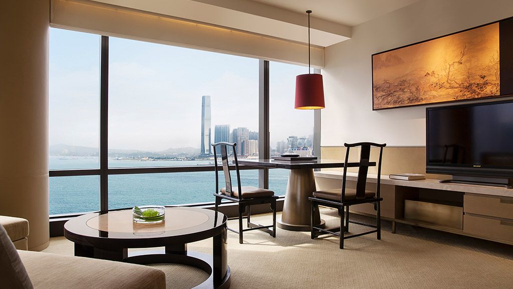 Enjoy the breathtaking Victoria Harbour views from the 80-square-metre Premier Harbour Suites.