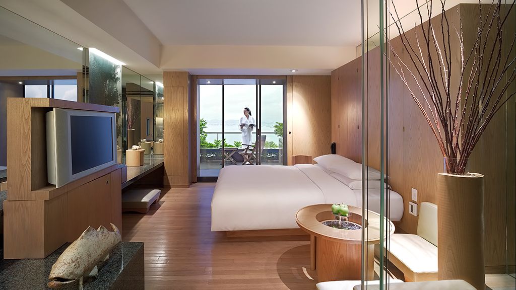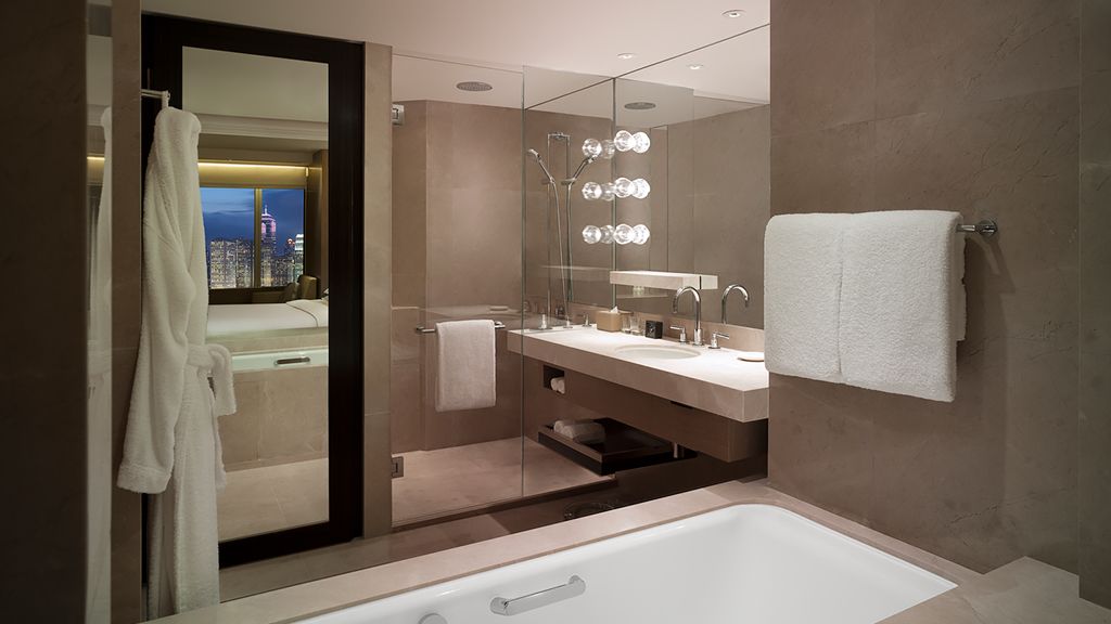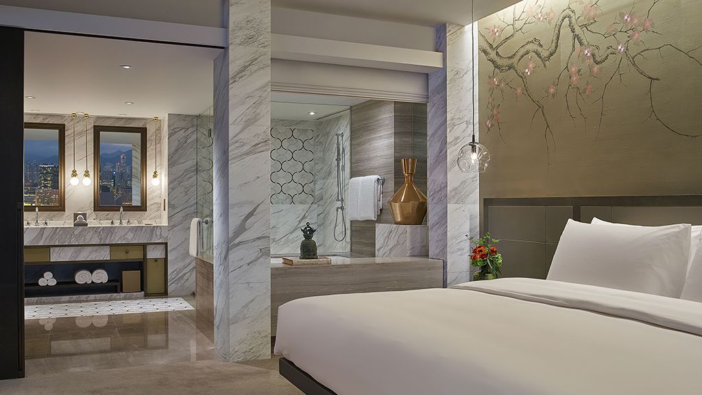 Set your sights on a 180-degree view of the Victoria Harbour and the Hong Kong skyline in this spacious 65-square meter suite.