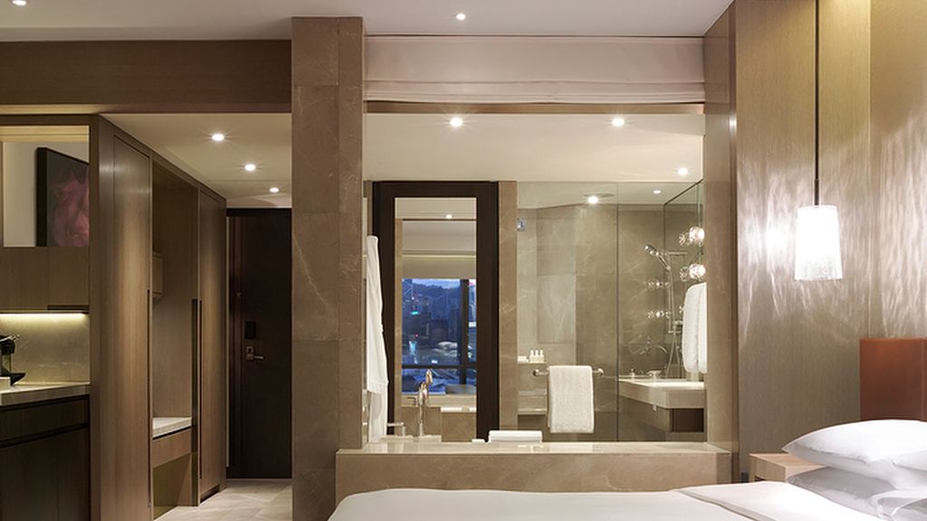 Take in the 270-degree views the Hong Kong skyline with the Victoria Harbour Suite in this 90-square-metre suite.