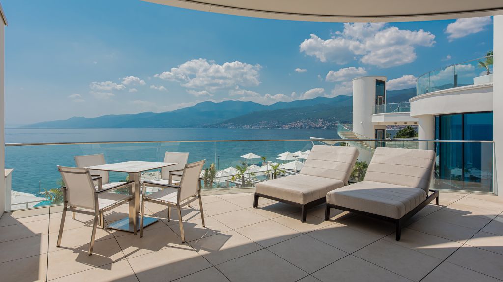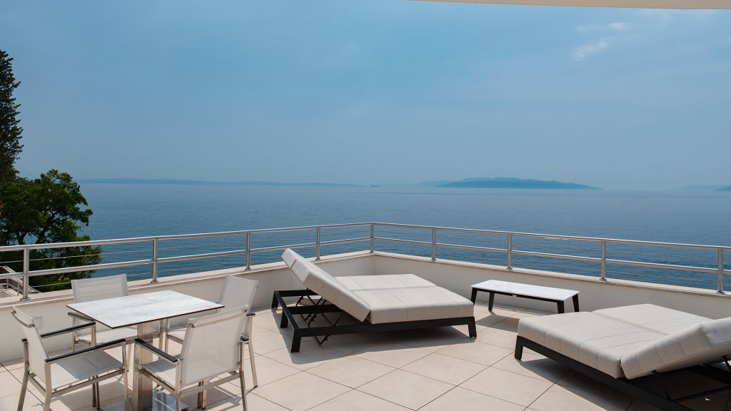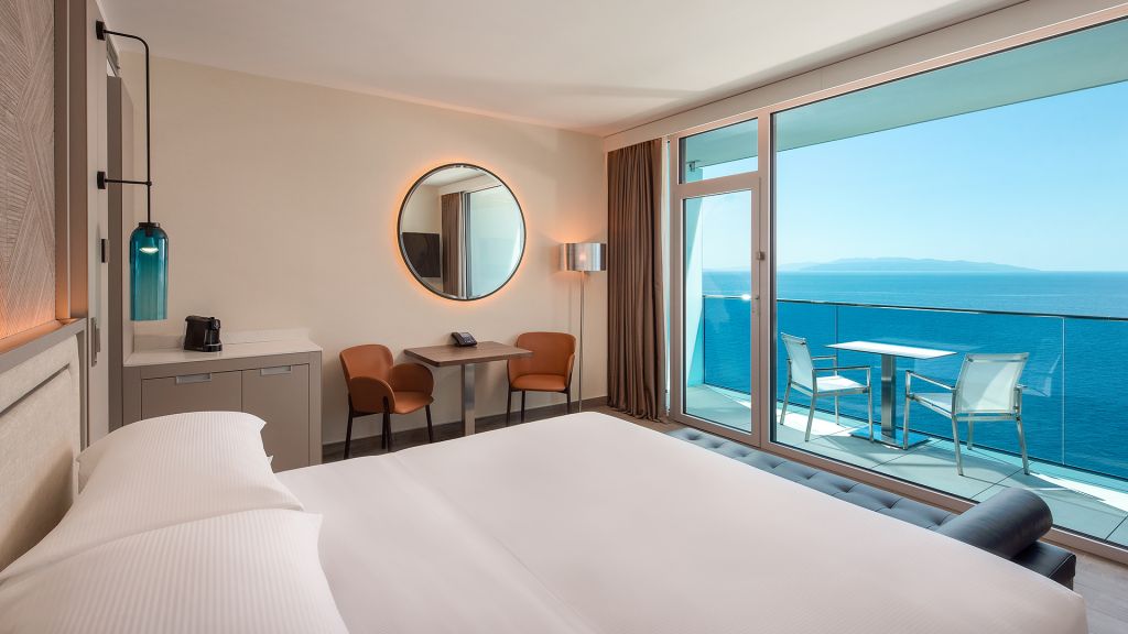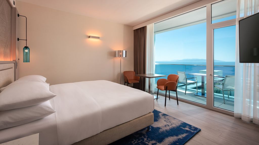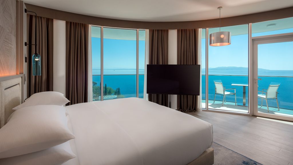 En el Hilton Rijeka Costabella Beach Resort & Spa, la mañana irrumpe como un fresco baño de luz sobre el Adriático, y el horizonte se despliega tan cerca que parece como si se pudiera entrar directamente en él.