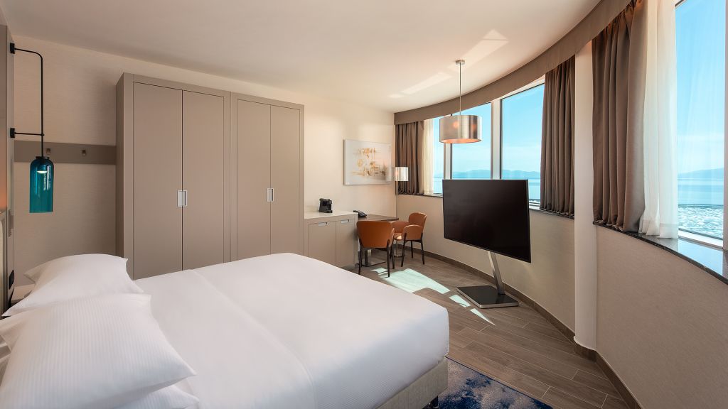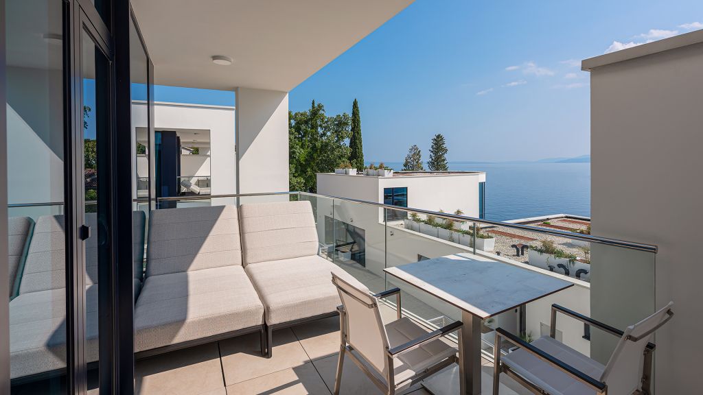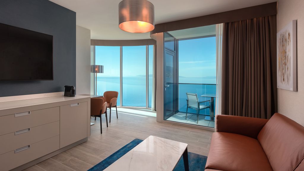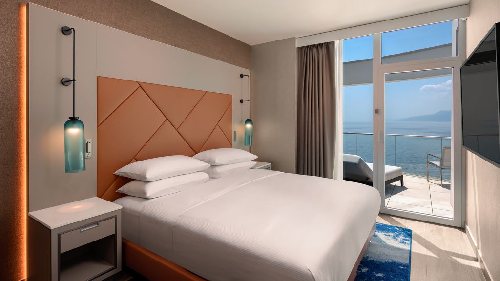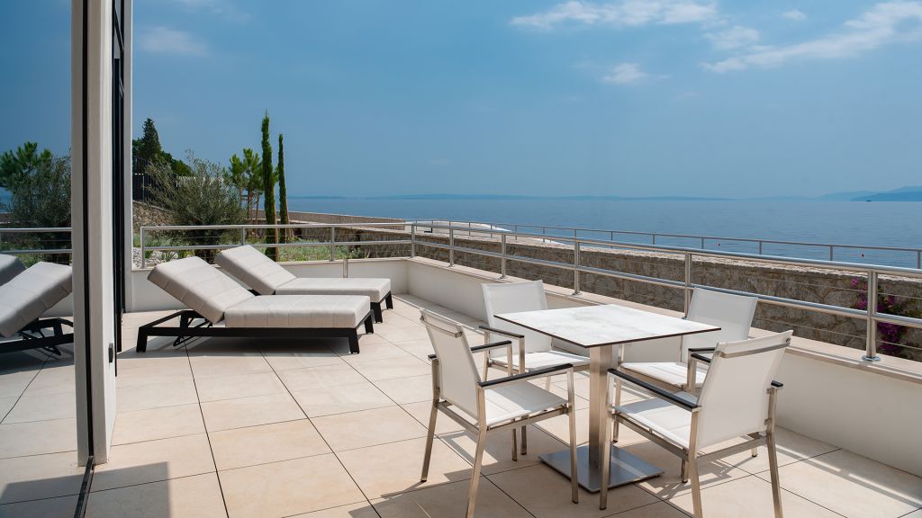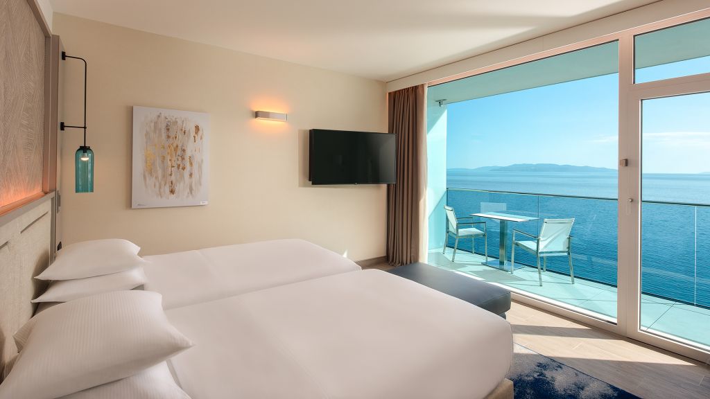 En el Hilton Rijeka Costabella Beach Resort & Spa, la mañana irrumpe como un fresco baño de luz sobre el Adriático, y el horizonte se despliega tan cerca que parece como si se pudiera entrar directamente en él.