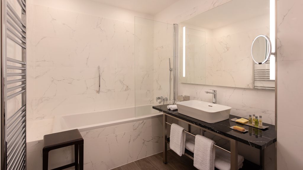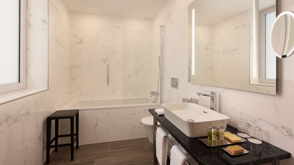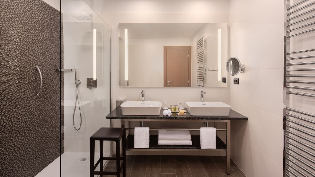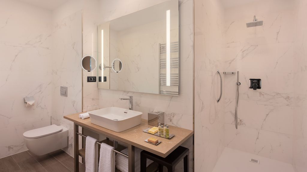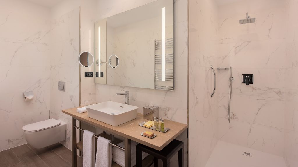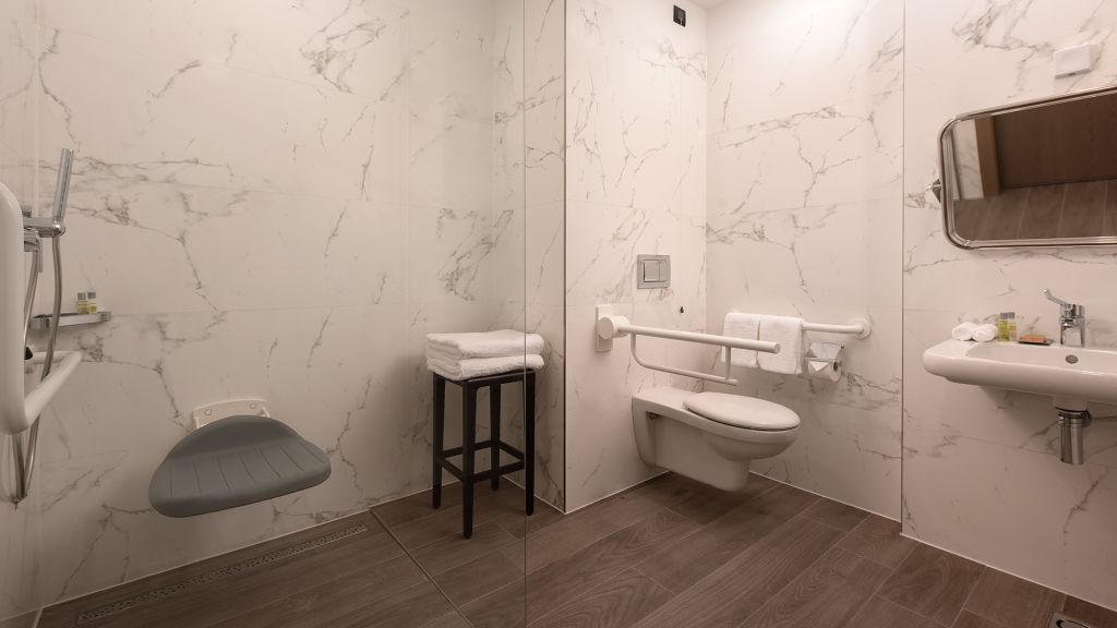 Wheelchair accessible room with roll-in shower, complimentary Wi-Fi, coffee/tea, minibar and safe.