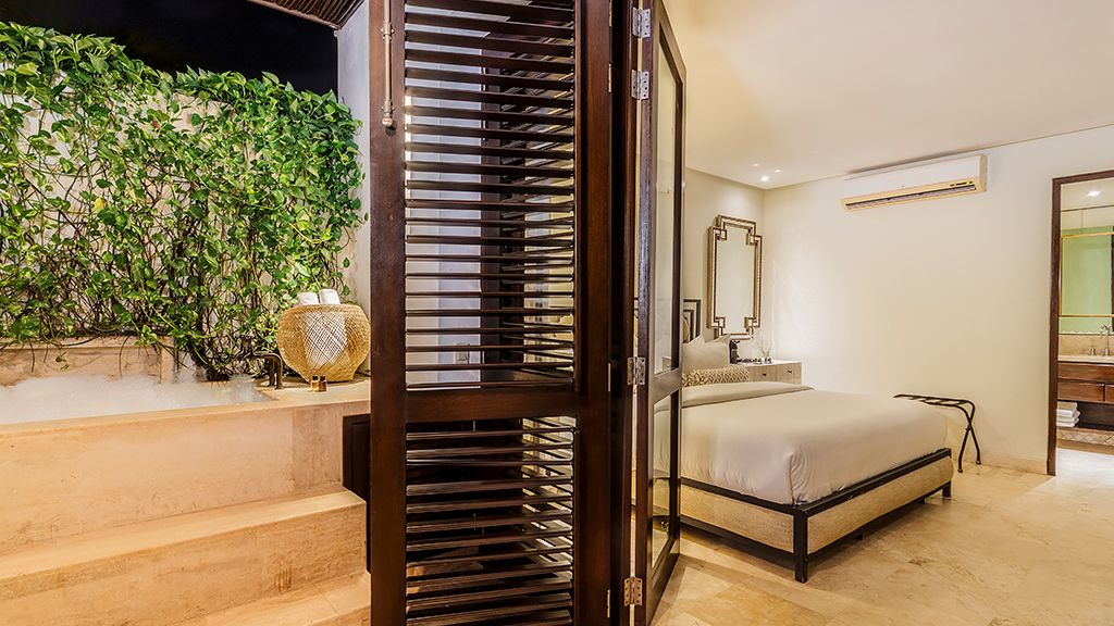 45 square meters Living room, 1 King bed with 100% fine cotton linens, Full bathroom, Air conditioning & Ceiling fan, Wall closet, Safe with capacity for a 14-inch laptop, 50 inch LCD television with satellite channels, 2 welcome bottles of water per day, Bathrobes, Exclusive bath amenities, Complimentary Wi-Fi.