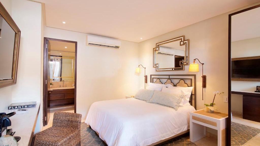 50 square meters Living room, 1 King bed with 100% fine cotton linens, Full bathroom, Air conditioning & Ceiling fan, Wall closet, Safe with capacity for a 14-inch laptop, 50 inch LCD television with satellite channels, 2 welcome bottles of water per day, Bathrobes, Exclusive bath amenities, Complimentary Wi-Fi.