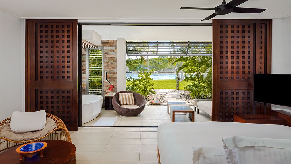 Suite with Living Area, Luxury Bath, Ground Floor, Daybed and Lagoon Access.