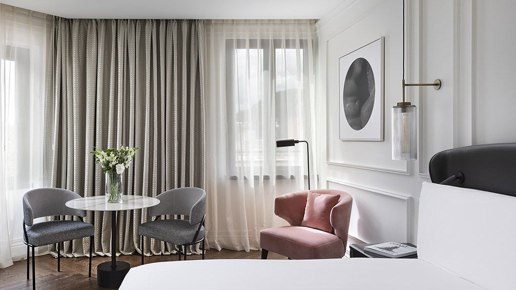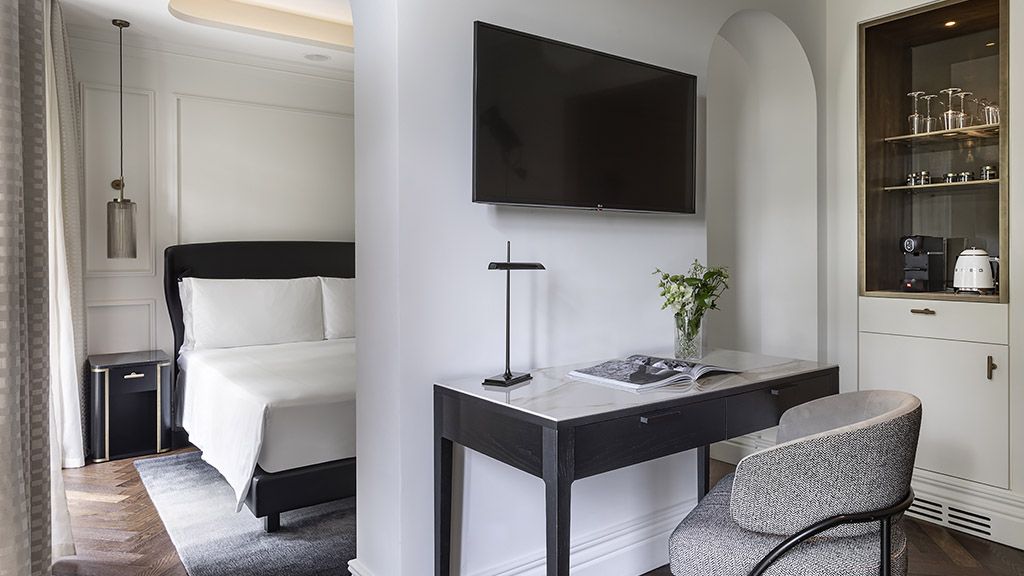44 to 48 sqm with 1 King Bed, Living Area, Stocked Minibar, Walk in Shower.