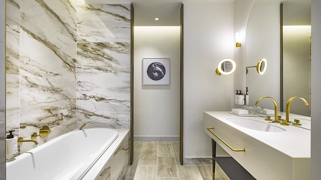 46 to 49 sqm with 1 King Bed, Living Area, Stocked Minibar, Walk in Shower, Bathtub.
