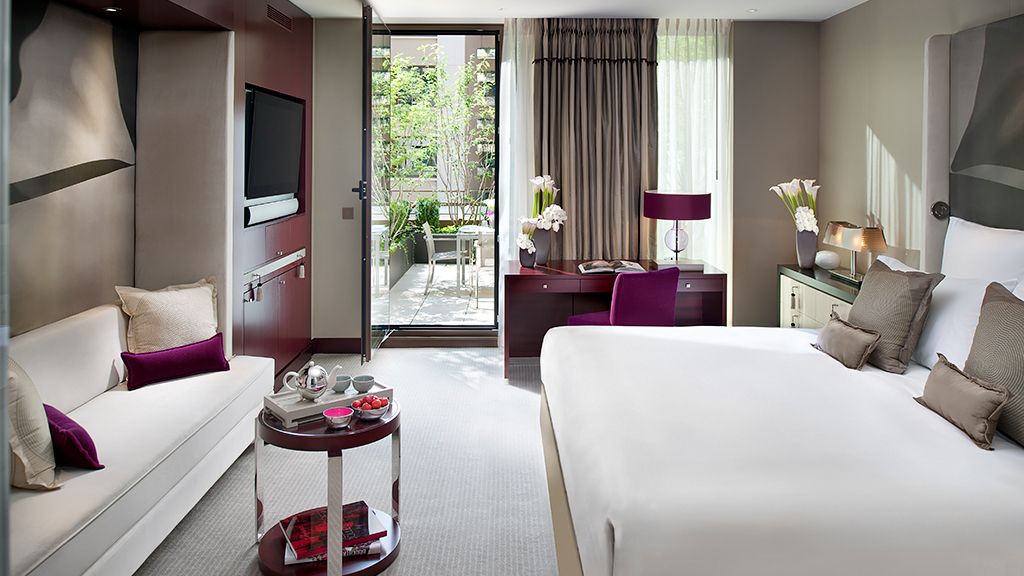 Overlooking our garden or the inner courtyard, our largest rooms offer king or twin beds and elegant sitting areas. Bathrooms have a spa-like feel with sculpted freestanding baths and walk-in showers. Some rooms have private balconies.