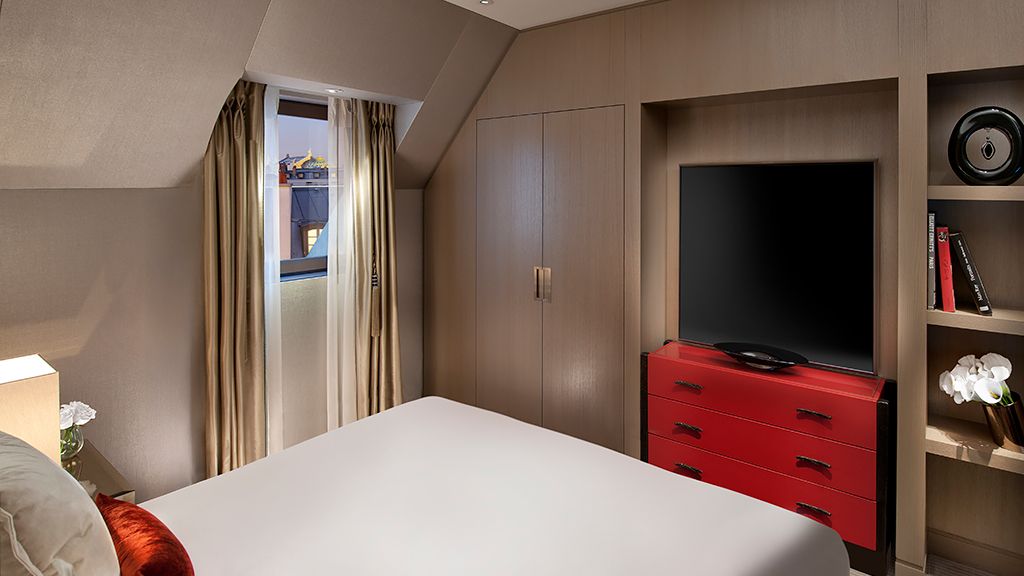 Overlooking the fashionable boutiques of rue saint-honoré, these rooms are thoughtfully furnished with contemporary artwork, silk bedspreads and king size beds. Bathrooms offer walk-in showers.