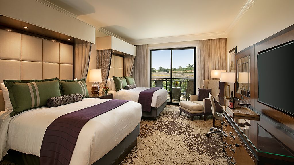 The accessible reserve two queen offers a modern 425 sq. Ft. Guestroom with resort and hillside vineyard views, free high-speed wi-fi, and a complimentary bottle of wine.