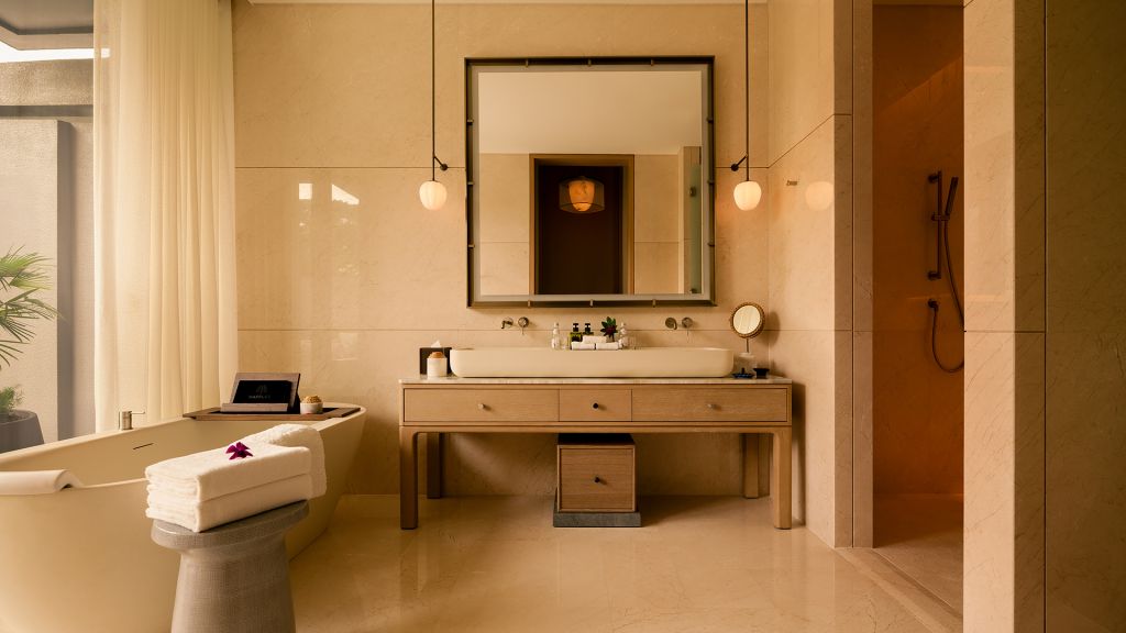 The luxury of space and our signature butler service set the tone for an indulgent stay. Includes Separate pavilions for living area and bedrooms, Private outdoor terrace, Private pool, 3.1m high ceilings with ceiling fans, All-marble double vanity bathrooms, Separate bathtub & walk-in shower, Luxury bathroom amenities, Complimentary high-speed Wi-Fi, 55-inch televisions, Wireless charging, 24-hour Raffles Butler service, Daily turndown service, Pillow menu, Express laundry service, 24-hour in-villa dining, Coffee & tea facilities, Outdoor furniture, Cabana daybed. Connecting villas available on request.