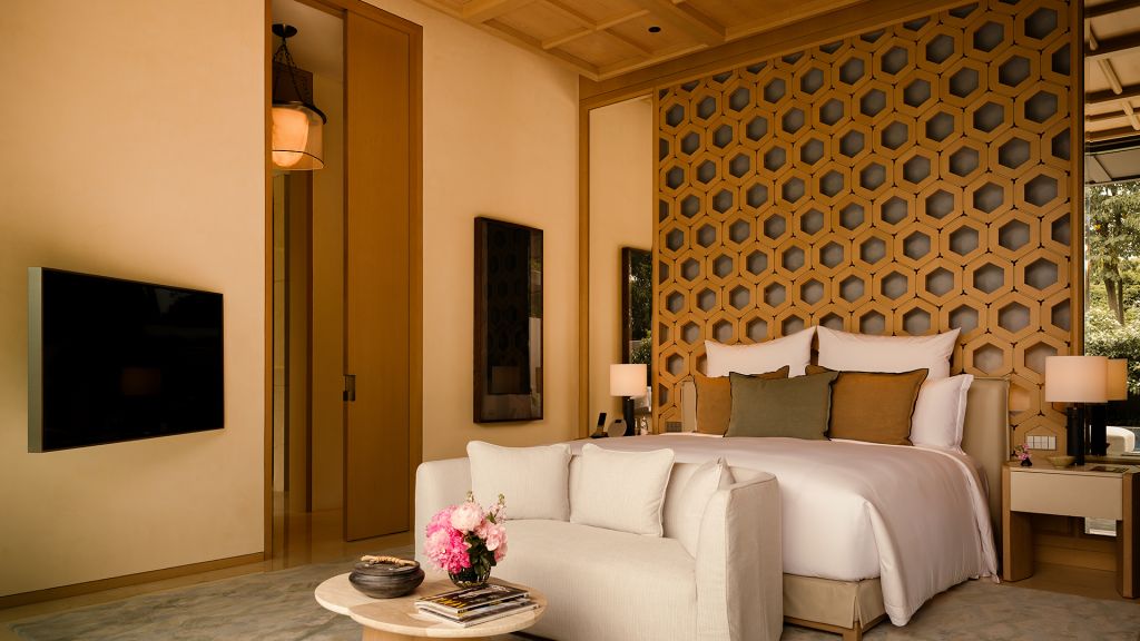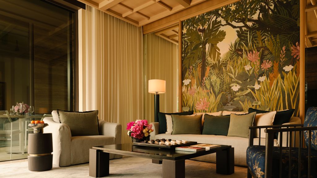 Be enveloped by the serenity of this idyllic villa amid greenery and views of the horizon. Includes separate pavilions for living area and bedroom, Private outdoor terrace, Private pool, 3.1m high ceilings with ceiling fans, All-marble double vanity bathrooms, Separate bathtub & walk-in shower, Luxury bathroom amenities, Complimentary high-speed Wi-Fi, 55-inch televisions, Wireless charging, 24-hour Raffles Butler service, Daily turndown service, Pillow menu, Express laundry service, 24-hour in-villa dining, Coffee & tea facilities, Outdoor furniture, Cabana daybed. Connecting villas available on request.
