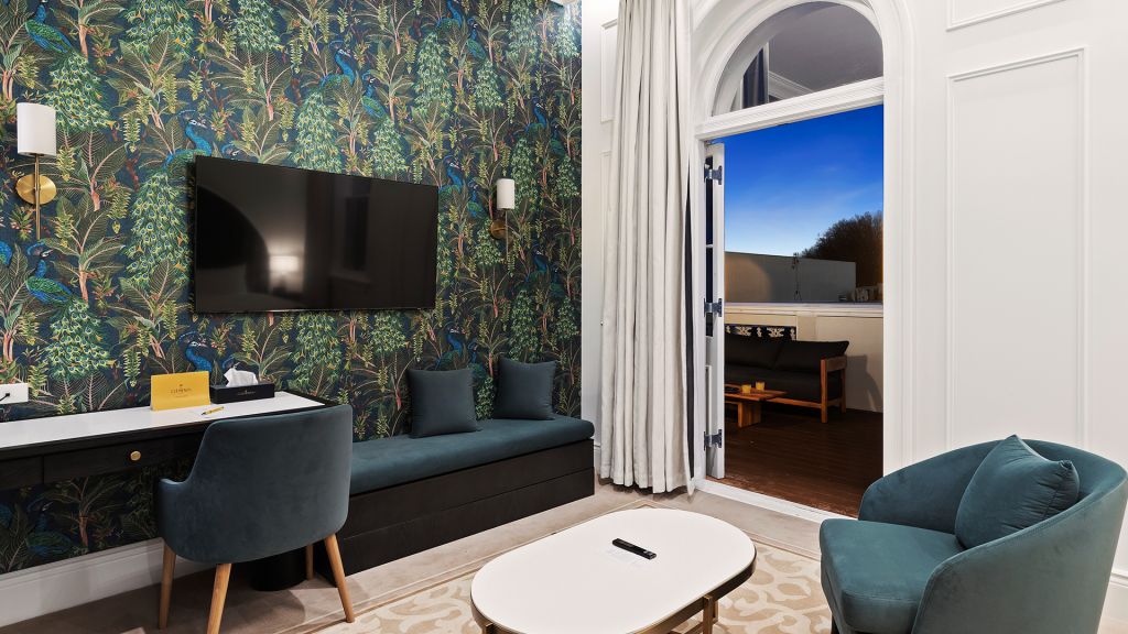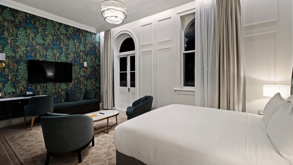 Suite with super king bed, free Wi-Fi, air conditioning, balcony and desk.