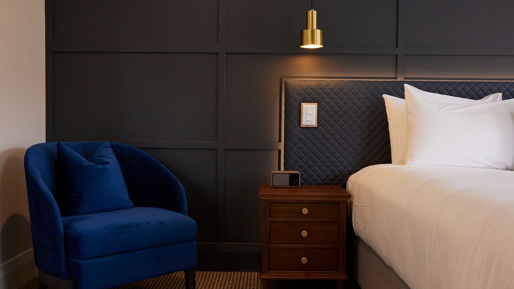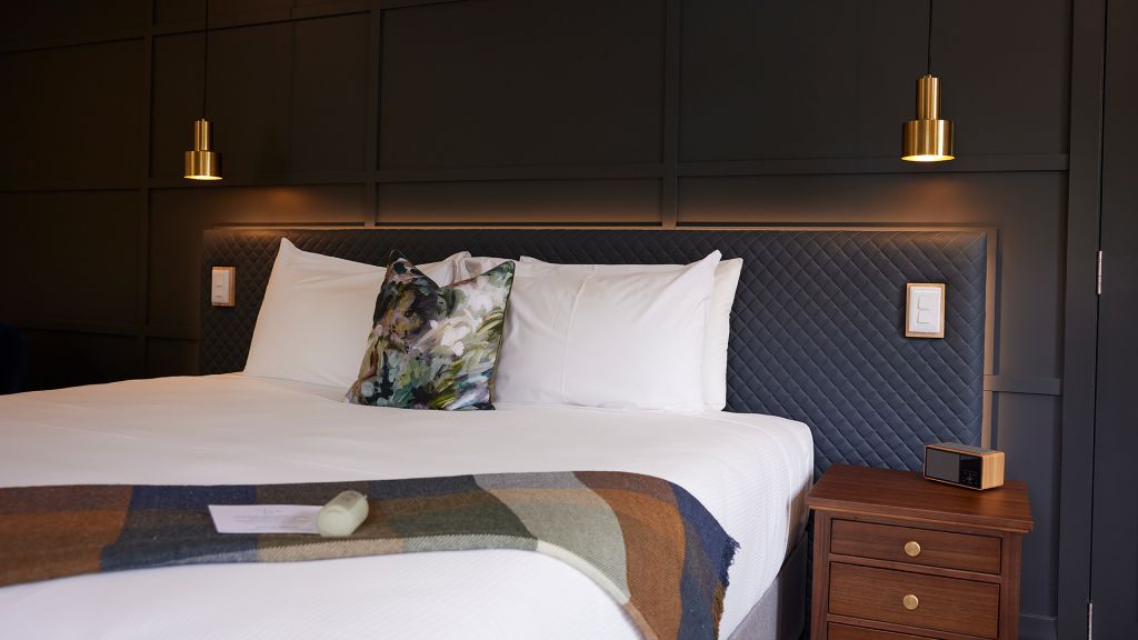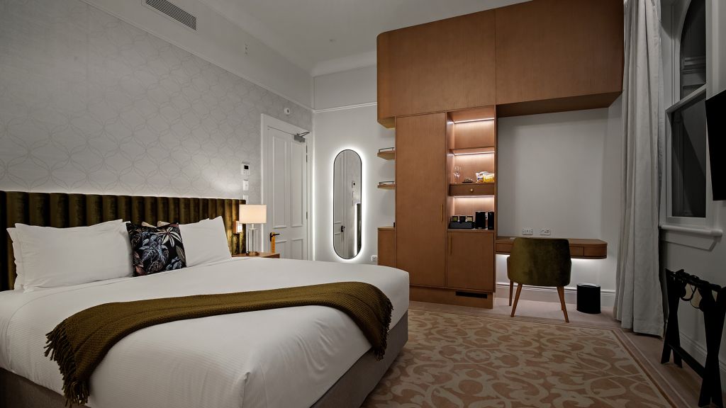 Deluxe Room with king bed, free Wi-Fi, air conditioning, work space and ensuite with shower.