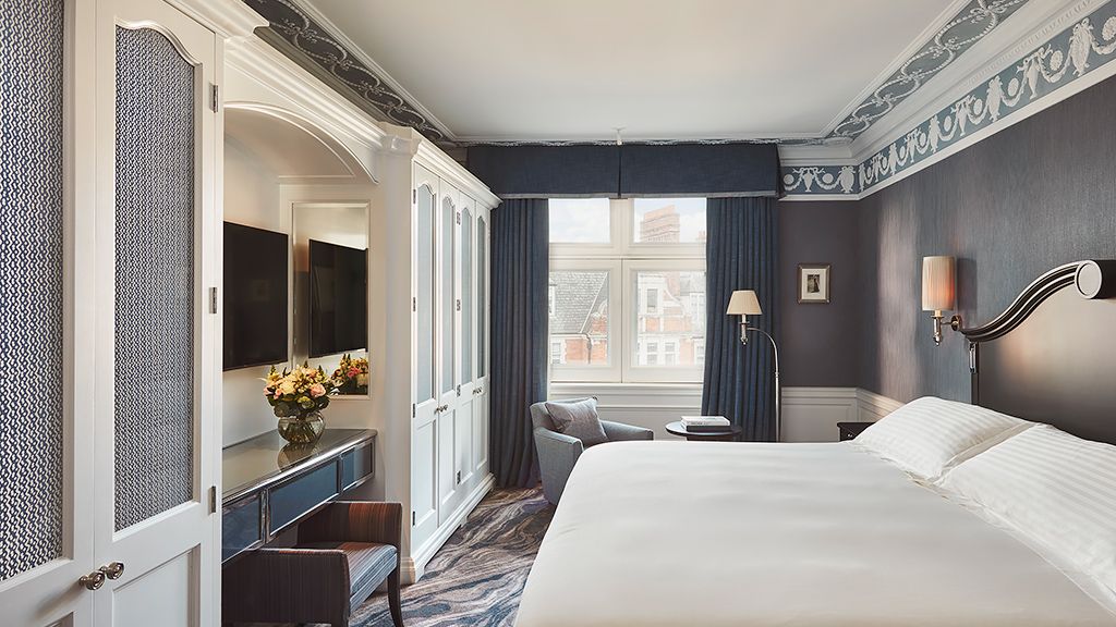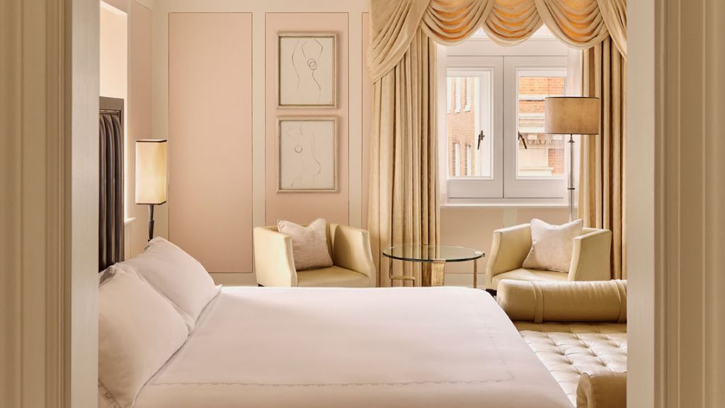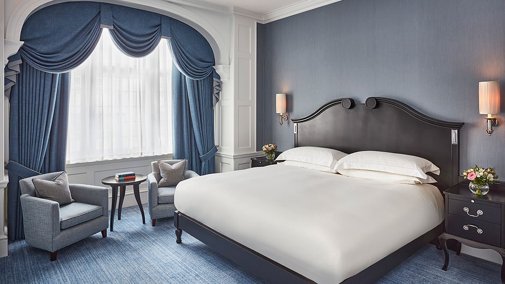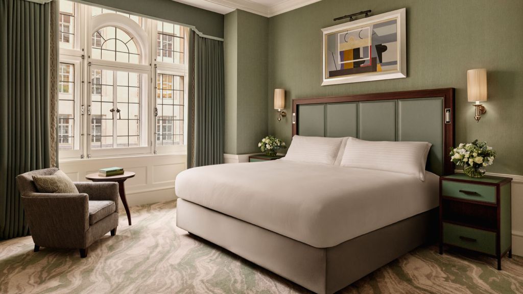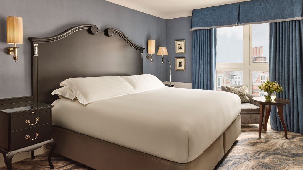 The Connaught's Superior Rooms, redesigned by Guy Oliver, blend contemporary tones with period features and art.