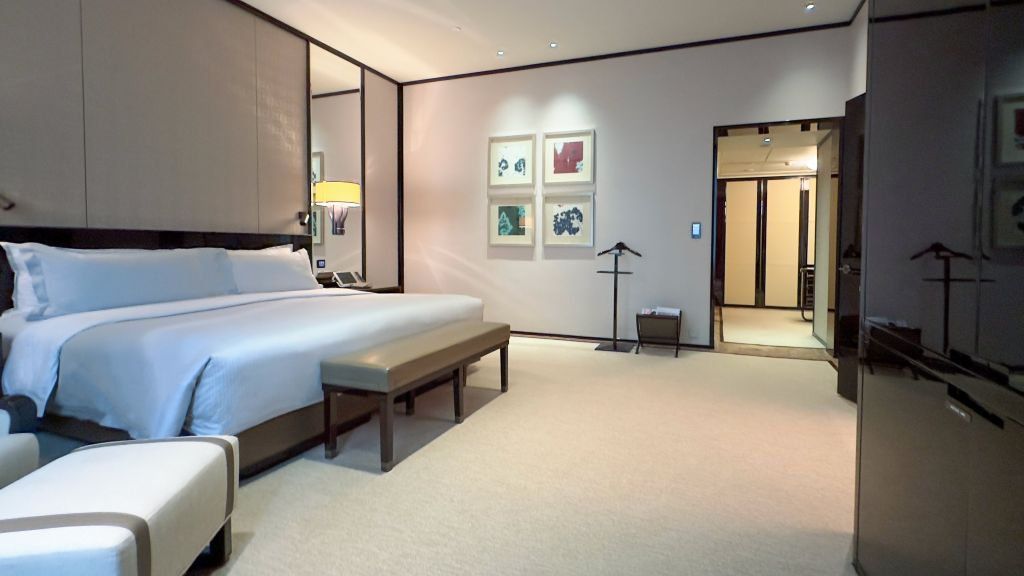 Deluxe suites are located in the main building and offer splendid views of the cultural centre through expansive windows. The spacious separate living area offers high ceilings and is tastefully appointed with richly upholstered armchairs and sofas. A dedicated dining area can comfortably host up to six guests for dinner or double as a convenient meeting venue. A separate bedroom features the finest comforts including a choice of one king-size or two twin-size beds with pillow top mattress - plush duvet and luxury linens - plus a vanity area and large walk-in closet. The marble bathroom is bathed in natural light and offers a tv situated over the bathtub - a separate shower cabin and upscale bath amenities. The latest technology simplified includes fully-customised interactive digital bedside and desk tablets that are pre-set in one of 11 languages - led touch-screen panels located on the walls offering full mastery of the in-room facilities - multiple dual-voltage power sockets with universal adaptors and chargers. Entertainment options include a widescreen plasma high-definition tv with cable and premium channels - cd and dvd players - a hi-tech entertainment system plus an ipod dock. Suite amenities include a printer / fax / copier / scanner - a large executive desk with ergonomic chair plus complimentary international phone calls and complimentary high-speed cabled and wireless internet access. Added amenities include bedside controls - electronic curtains - a nespresso coffee machine - a well-stocked mini-bar - a personal safe and soundproofing. Both non-smoking and smoking suites are available on request. Suite size is 121 square meters / 1302 square feet. Maximum occupancy is 4 persons using 2 rollaway beds on request. No connecting rooms are available for this suite type.