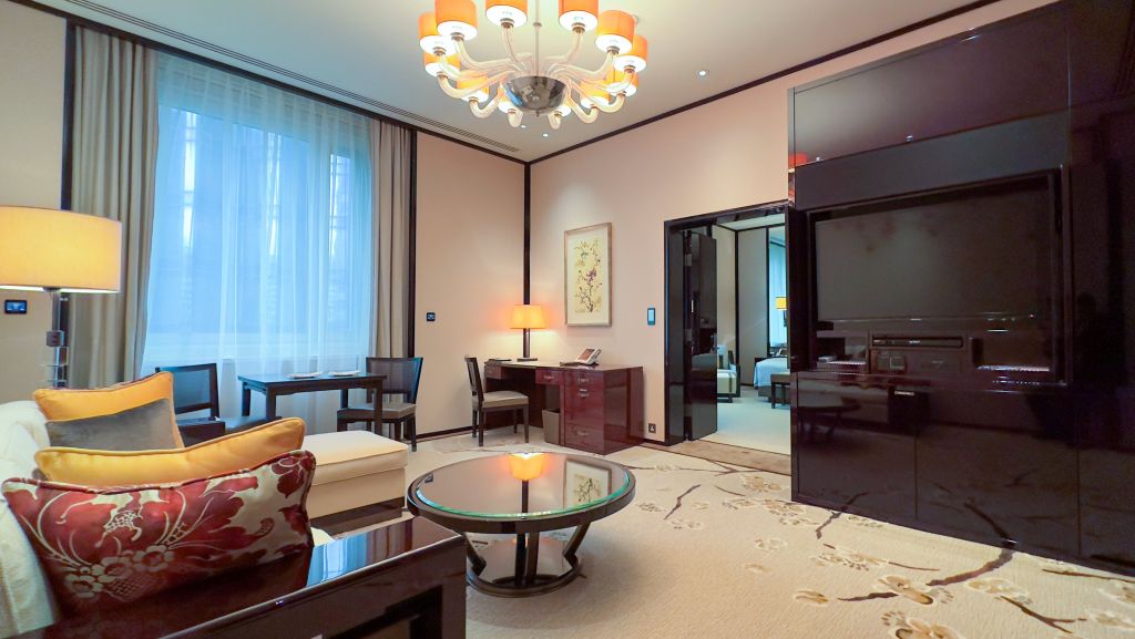 Deluxe harbour view suites are located on high floors in the tower building offering breathtaking 270 degree views of victoria harbour and hong kong island from both the living room and bedroom. The separate bedroom features a choice of one king or two twin-size beds with pillow top mattress - plush duvet and luxury linens - along with comfortable armchairs. The suite features a telescope that can be used to view the stunning panorama. The large walk-in dressing room is equipped with its own vanity area - while the well-appointed marble bathroom has a distinctive deep soaking bathtub with an integrated tv in the corner plus a separate shower cabin. Added features include a spacious living area - a fireplace plus a richly upholstered l-shaped sofa. The latest technology simplified includes fully-customised interactive digital bedside and desk tablets that are pre-set in one of 11 languages - led touch-screen panels located on the walls offering full mastery of the in-room facilities plus multiple dual-voltage power sockets with universal adapters and chargers. Entertainment options include a widescreen plasma high-definition tv with cable and premium channels - cd and dvd players - a hi-tech entertainment system plus an ipod dock. Suite amenities include a printer / fax / copier / scanner - a large executive desk with ergonomic chair - complimentary international phone calls and complimentary high-speed cabled and wireless internet access. Added amenities include bedside controls - electronic curtains - a nespresso coffee machine - a well-stocked mini-bar - a personal safe and soundproofing. Both non-smoking and smoking suites are available on request. Suite size is 107 square meters / 1152 square feet. Maximum occupancy is 4 persons using 2 rollaway beds on request. Some of these suites can connect to a grand deluxe harbour view room on a request basis.