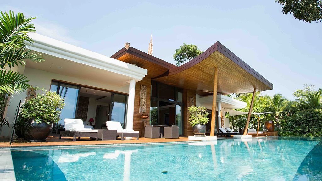 Features four bedrooms, large outdoor pool, complimentary WiFi, maid and cook